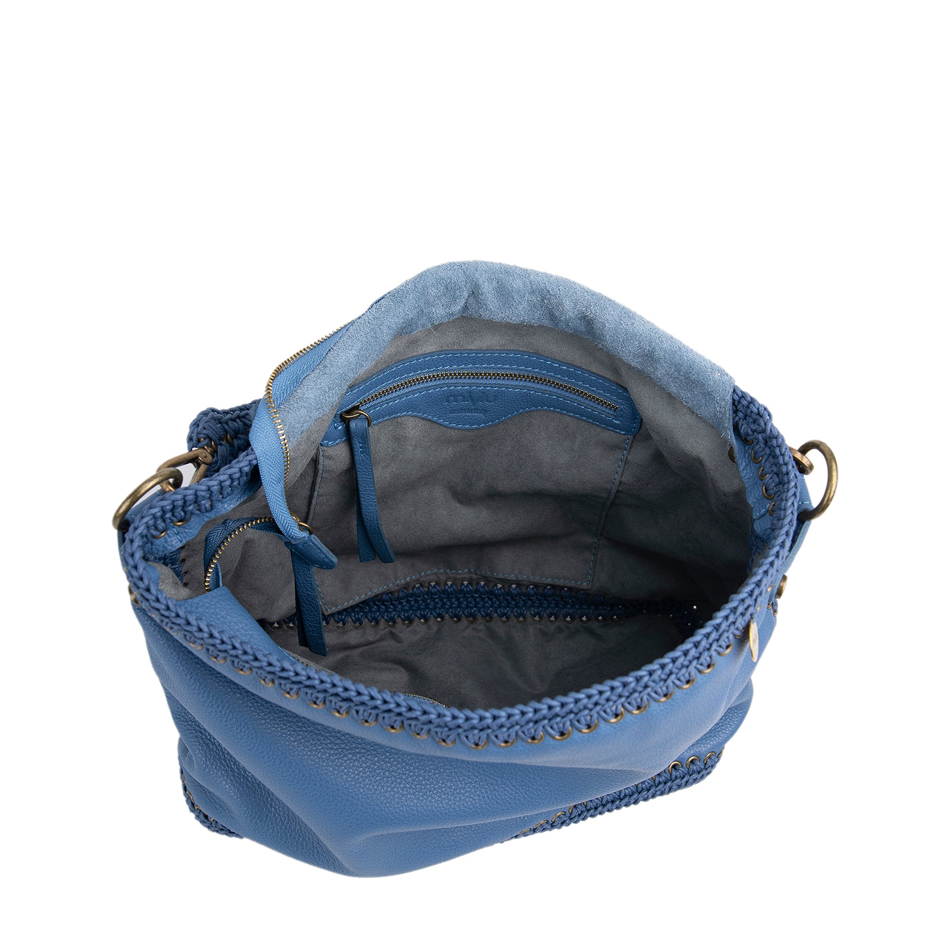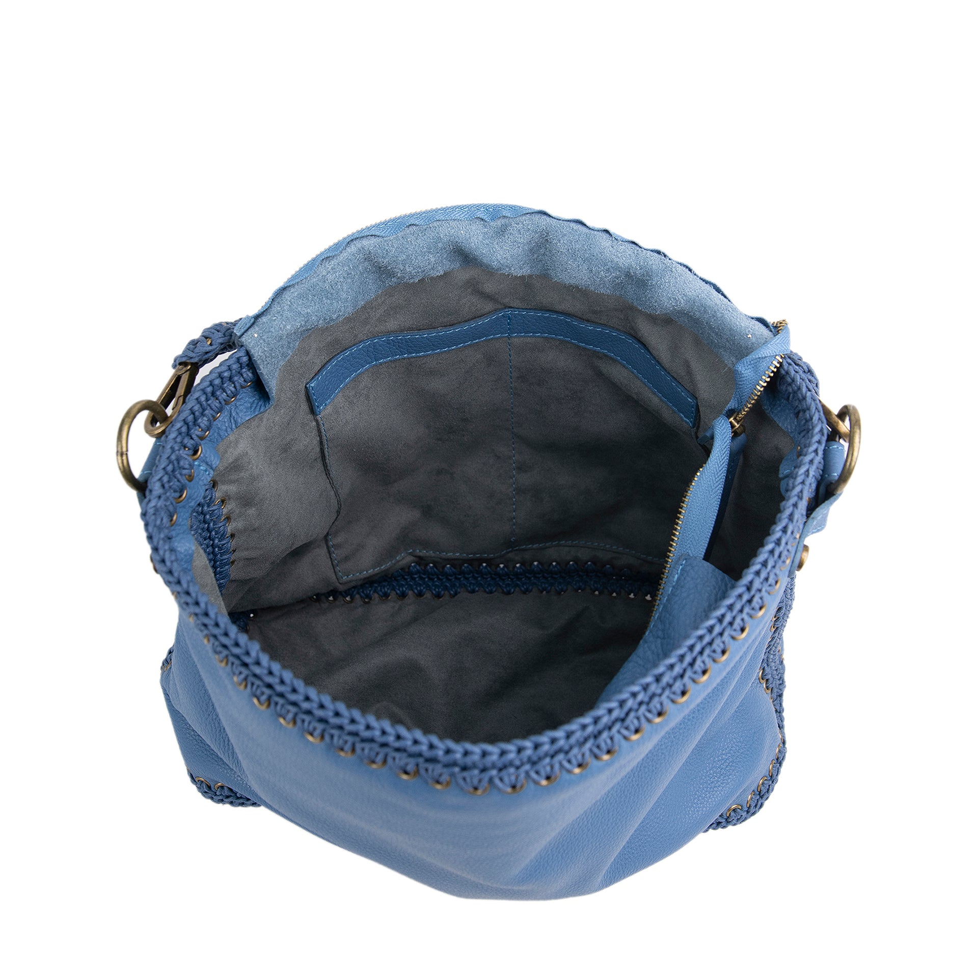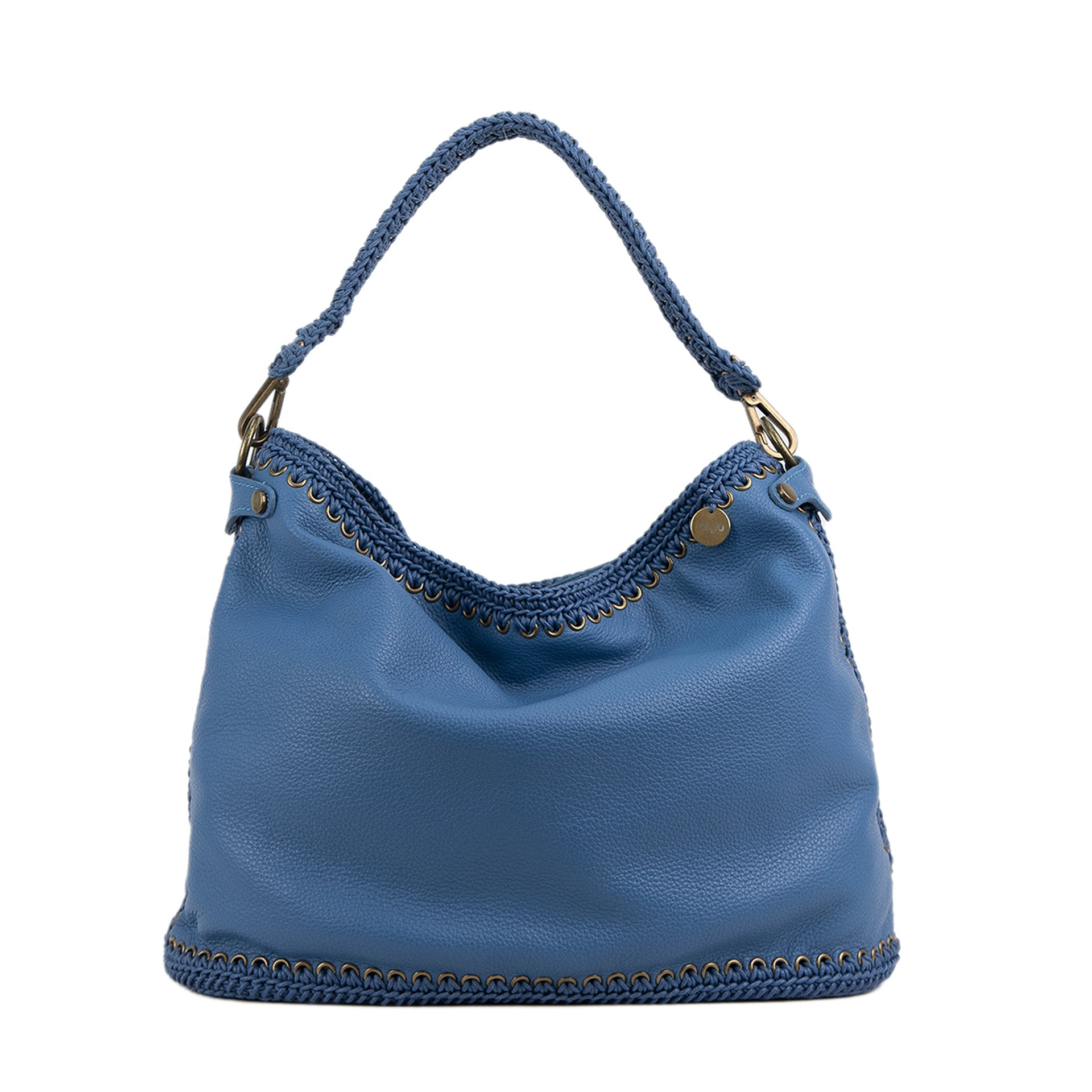 Ida L è una borsa hobo di grandi dimensioni, realizzata cucendo a mano all'uncinetto i pannelli in pelle. Tutto il lavoro all'uncinetto è realizzato con un cordoncino di cotone cerato, molto resistente. La pelle è di vitello con un tocco delicato. L'interno della borsa ha la parte in pelle foderata in un unico pezzo e si possono vedere tutte le lavorazioni. La borsa è dotata di una tracolla che può essere allungata e può essere indossata sia come borsa a spalla che come borsa a tracolla. Il manico è lavorato a mano coordinato alla borsa. All'interno è presente una tasca con zip e due tasche aperte. La parte superiore della borsa è chiusa da una zip.