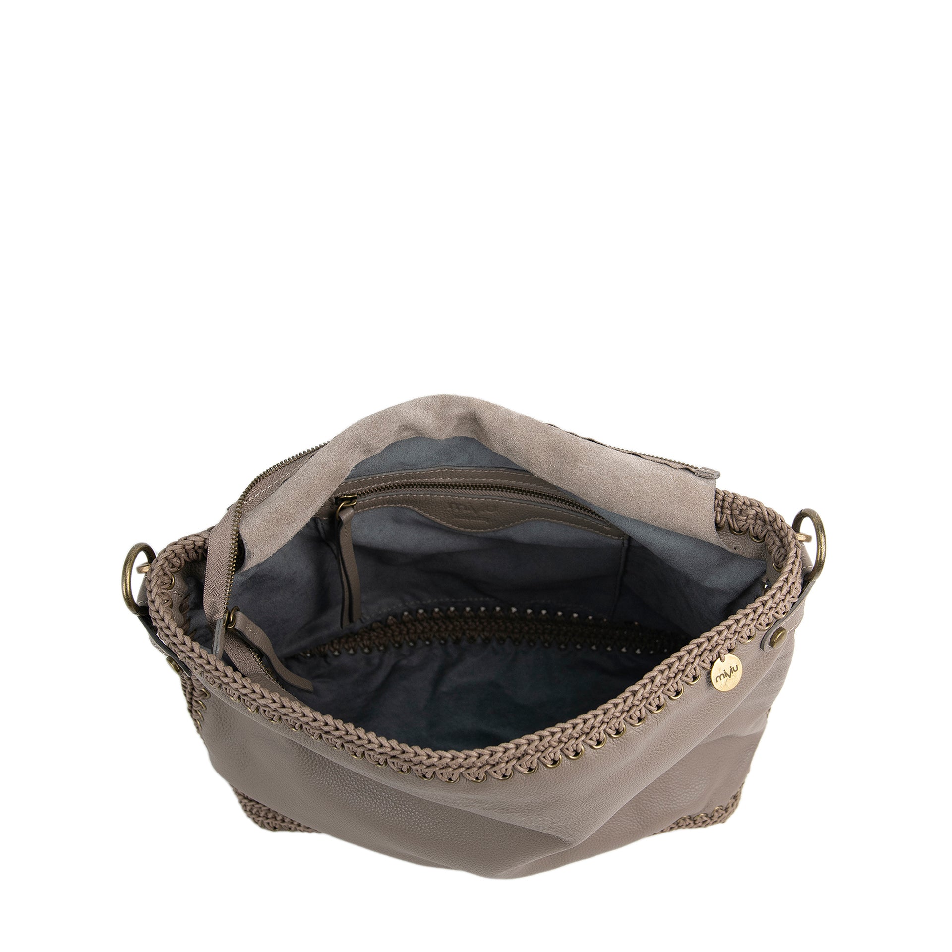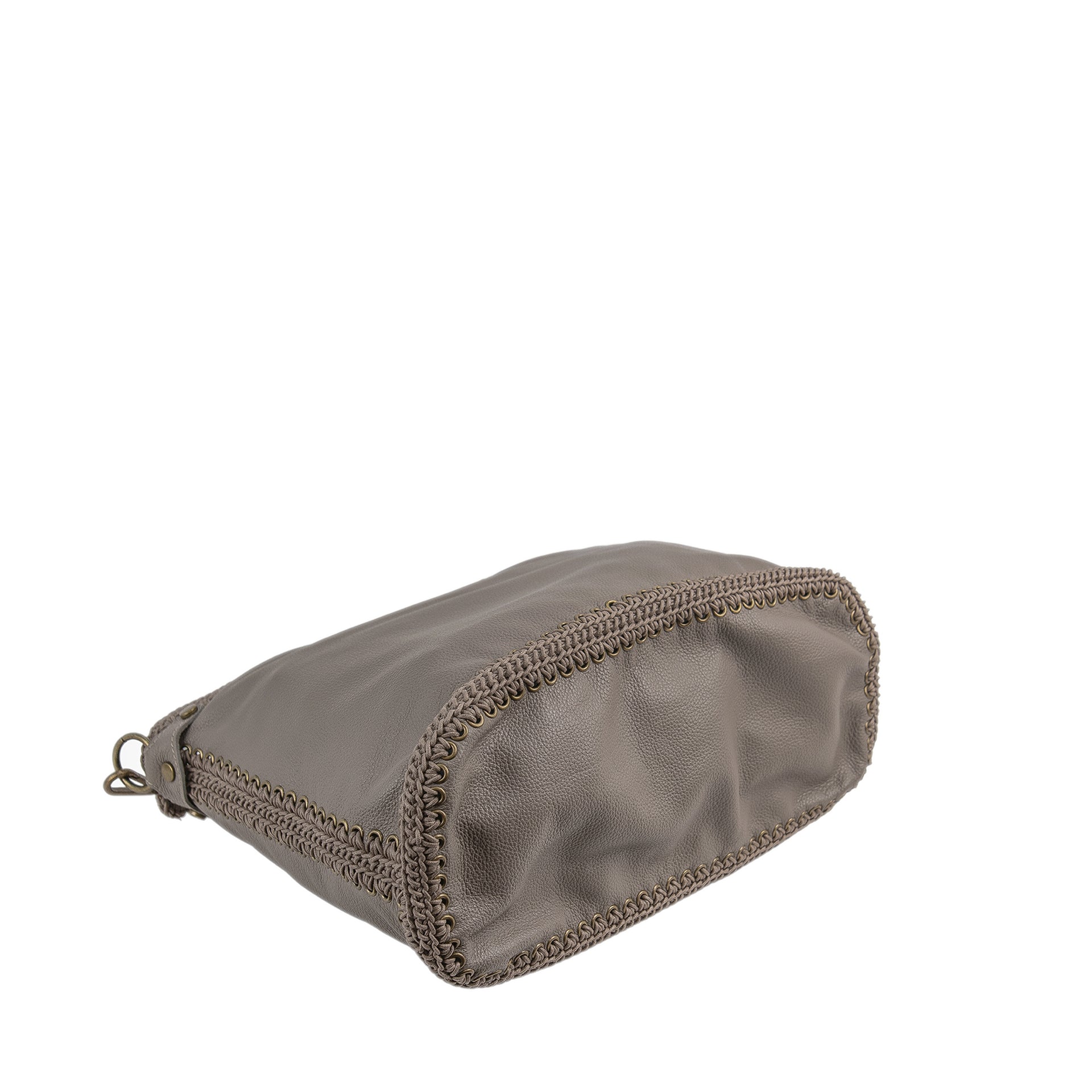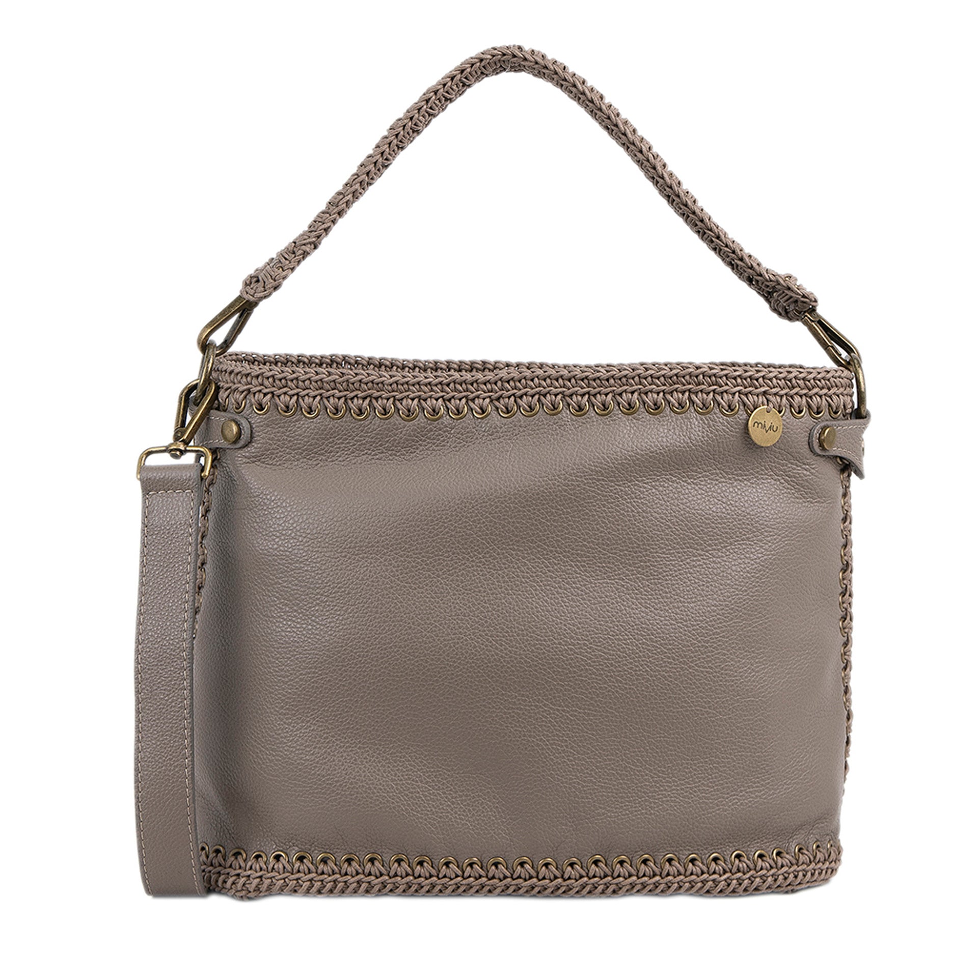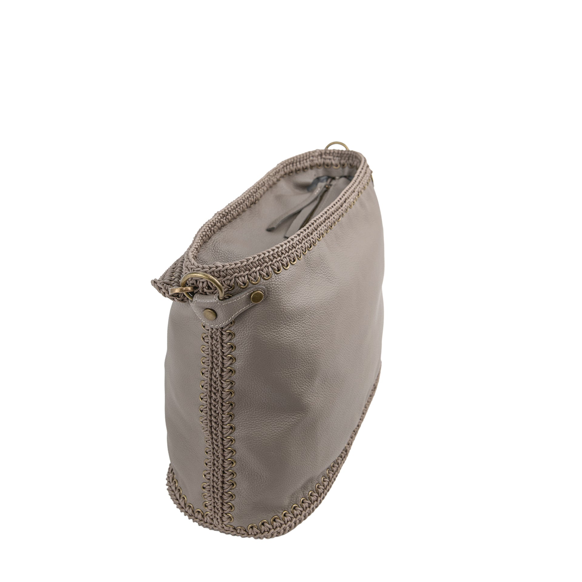 Ida L è una borsa hobo di grandi dimensioni, realizzata cucendo a mano all'uncinetto i pannelli in pelle. Tutto il lavoro all'uncinetto è realizzato con un cordoncino di cotone cerato, molto resistente. La pelle è di vitello con un tocco delicato. L'interno della borsa ha la parte in pelle foderata in un unico pezzo e si possono vedere tutte le lavorazioni. La borsa è dotata di una tracolla che può essere allungata e può essere indossata sia come borsa a spalla che come borsa a tracolla. Il manico è lavorato a mano coordinato alla borsa. All'interno è presente una tasca con zip e due tasche aperte. La parte superiore della borsa è chiusa da una zip.