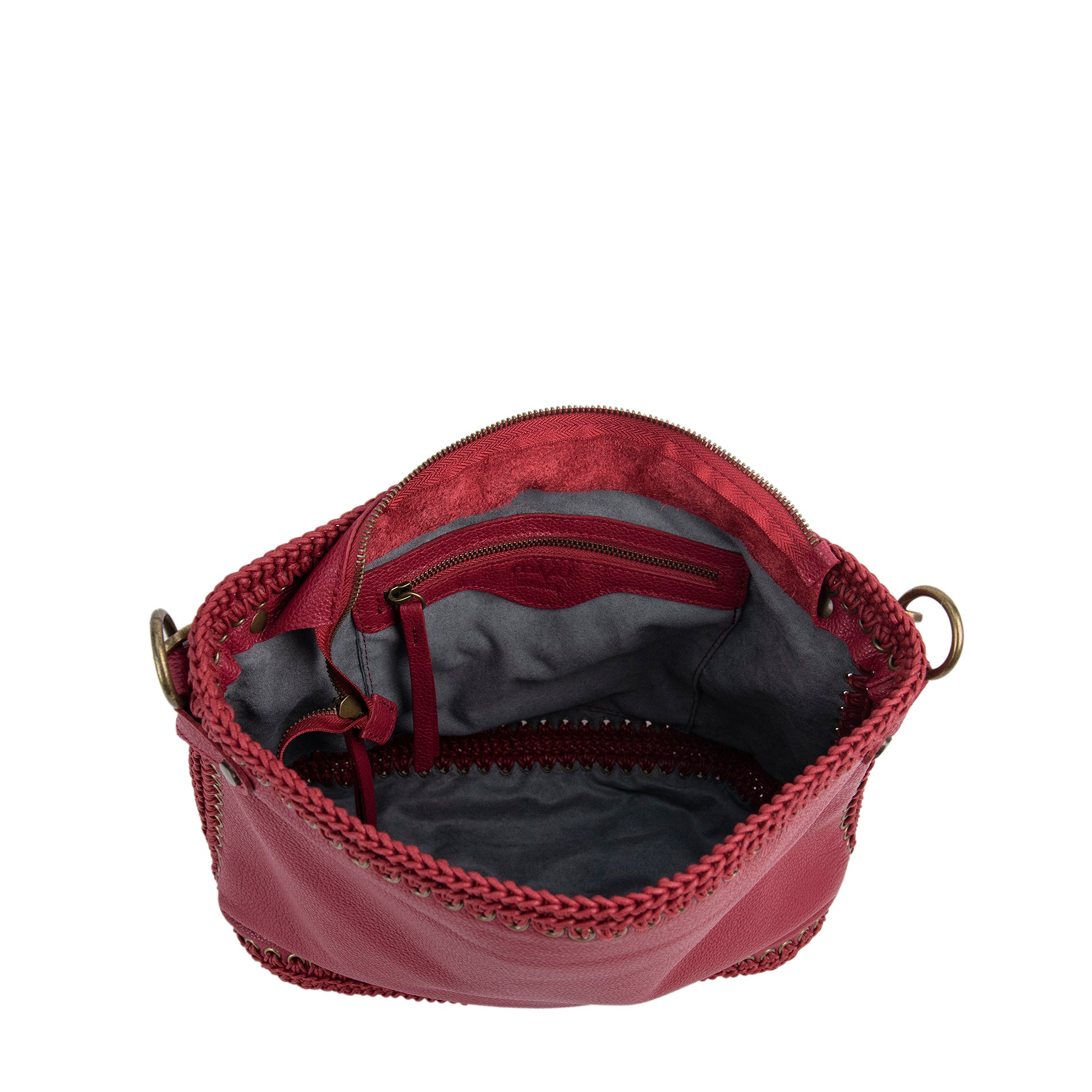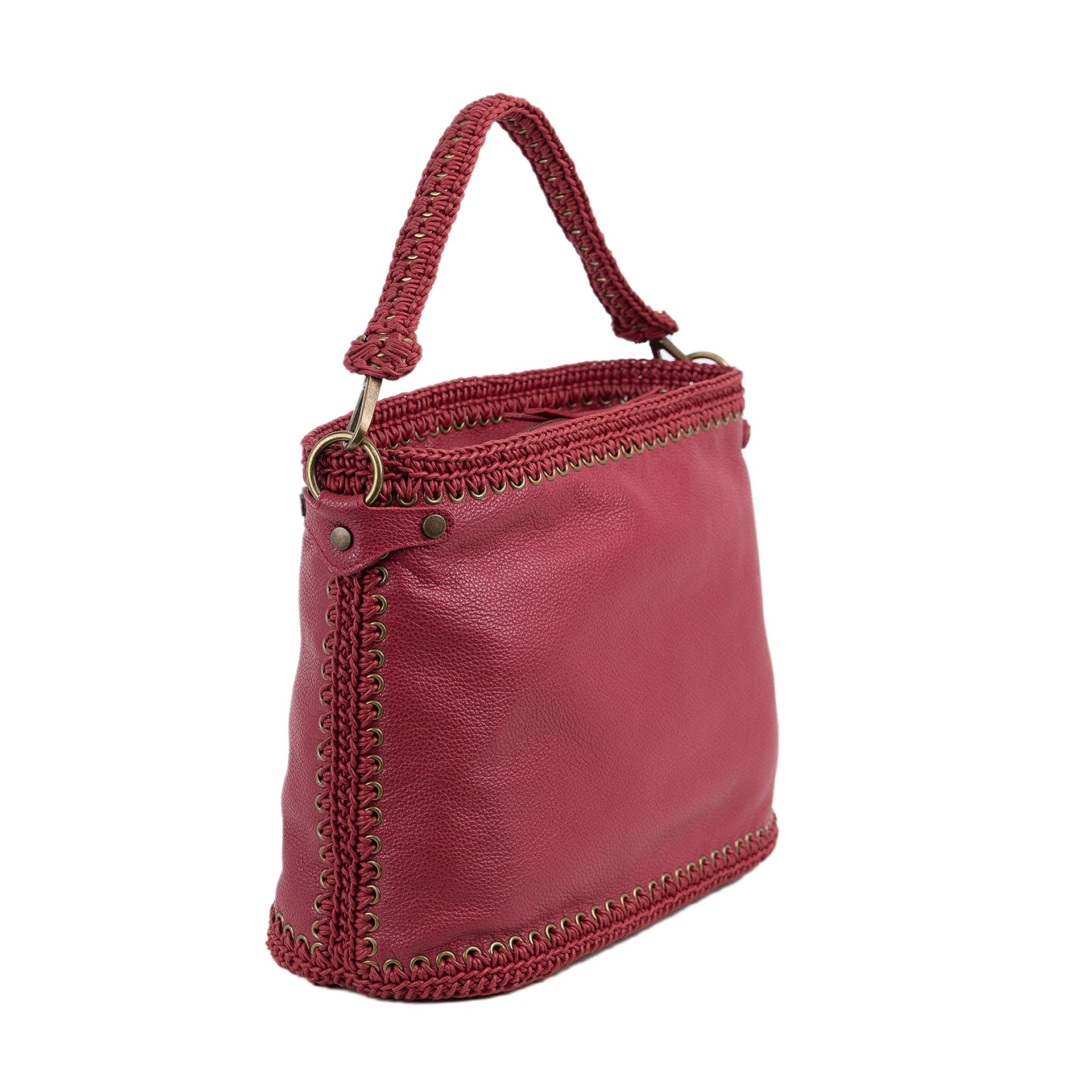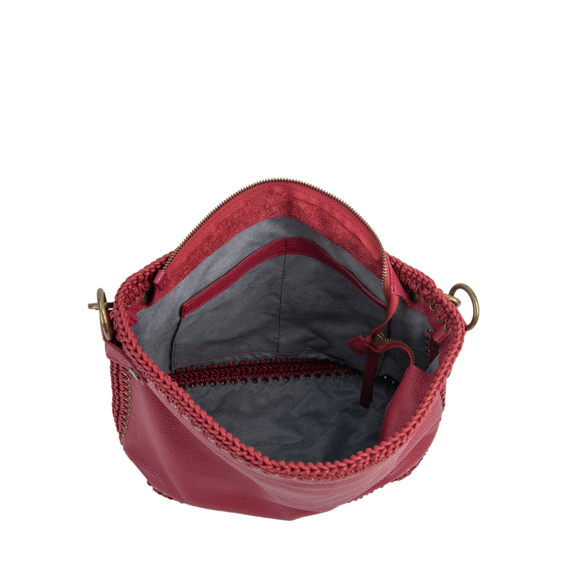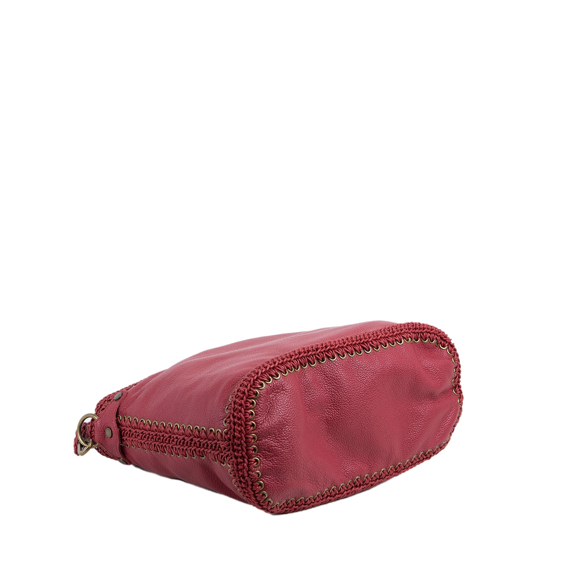 Ida M è una borsa hobo di medio-grandi dimensioni, realizzata cucendo a mano all'uncinetto i pannelli in pelle. Tutto il lavoro all'uncinetto è realizzato con un cordoncino di cotone cerato, molto resistente. La pelle è di vitello con un tocco delicato. L'interno della borsa ha la parte in pelle foderata in un unico pezzo e si possono vedere tutte le lavorazioni. La borsa è dotata di una tracolla che può essere allungata e può essere indossata sia come borsa a spalla che come borsa a tracolla. Il manico è lavorato a mano coordinato alla borsa. All'interno è presente una tasca con zip e due tasche aperte. La parte superiore della borsa è chiusa da una zip.